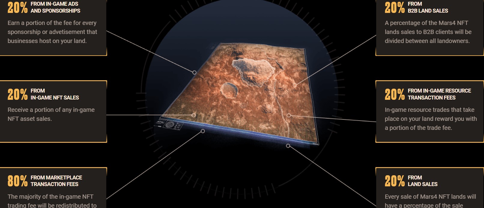 Mars4 is a project based on blockchain that allows users to earn passive income through revenue-generating NFTs and play-to-earn Mars Metaverse game.​